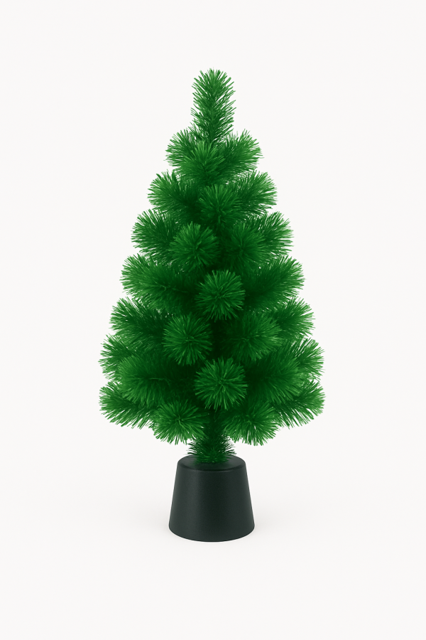 A 45cm mini artificial Christmas tree with lush green branches and a sturdy base. Perfect for desks, shelves, small rooms, offices, and DIY decoration. No lights included—decorate it your way.