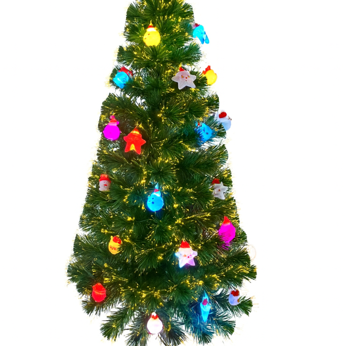 The tree features dense, fresh-green PVC branches that look natural and full, offering a realistic appearance while remaining durable and reusable for many seasons. It includes a stable metal stand that ensures excellent support and easy assembly. Simply unfold, shape the branches, plug in the lights, and enjoy your festive display in minutes.